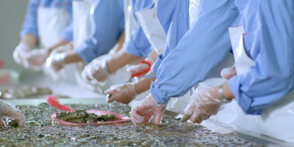 建設(shè)標(biāo)準(zhǔn)化海參加工基地。2007年興建遼西第一家擁有國內(nèi)先進(jìn)設(shè)備的水產(chǎn)品加工基地,至今擁有海參初加工、海參精加工兩大生產(chǎn)加工車間。其中初加工車間日加工量達(dá)20萬斤,年加工鮮活海參2000萬斤,實現(xiàn)海參原料加工規(guī)模化生產(chǎn);精加工車間生產(chǎn)線改造升級后,年加工即食海參100萬斤,同時提升海參精加工能力及品類,突破傳統(tǒng)海參產(chǎn)品。